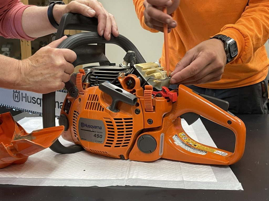 These are basic fixes you can learn to do yourself, or you can take your saw to a local small-engine mechanic. If you are interested in learning more about chainsaw troubleshooting and maintenance, check out these video from Iowa State Extension.
